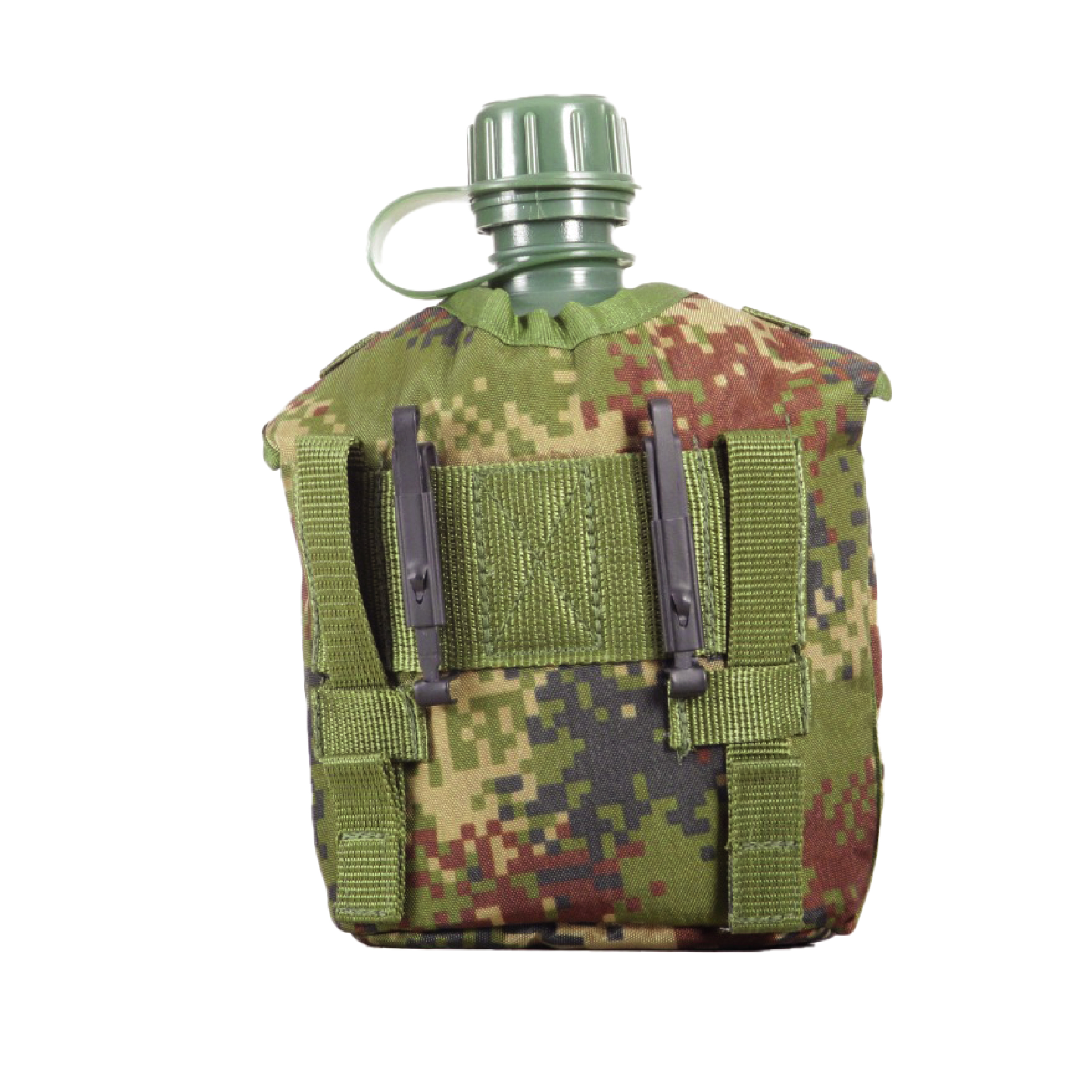 Disponible en diferentes estilos, esta cantimplora es una solución versátil para actividades al aire libre. Con unas medidas aproximadas de 50 cm de largo, 30 cm de ancho y 16 cm de fondo, incluye una botella de plástico, una jarra de metal y un forro de tela impermeable con base resistente a la abrasión.