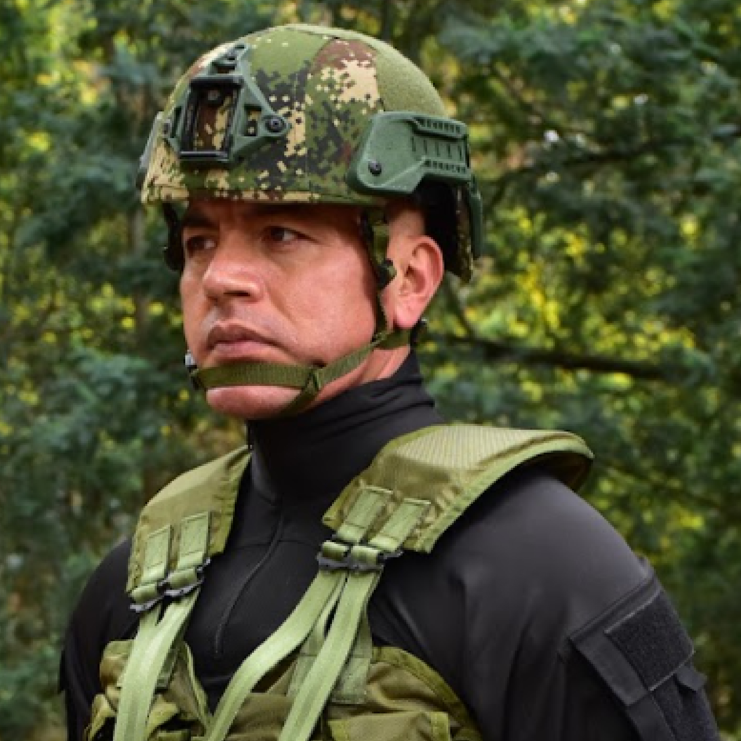 Diseñado para fuerzas especiales, este chaleco tiene 10 bolsillos para cargadores de rifle de 5,56 mm, 2 para granadas de mano, uno para radio y otro para brújula. En la parte trasera incorpora una bolsa de asalto extraíble y un compartimento para primeros auxilios. - Fabricado en doble lona impermeable y resistente, con amarres y herrajes de alta calidad, es personalizable según las necesidades operativas.